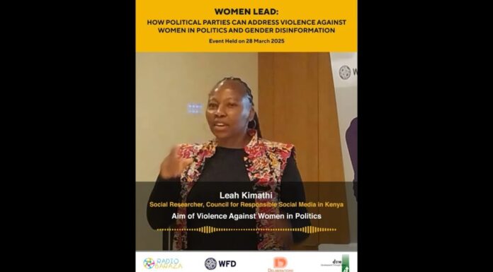 This is an excerpt from: Women Lead: How Political Parties Can Address Violence Against Women in Politics and Gender Disinformation.Event Organised on 28 March 2025 by Westminster Foundation for Democracy-Kenya. https://www.radiobaraza.org/wfd-violence-against-women-in-politics/